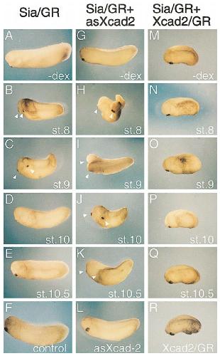 Reduction of Xcad2 function allows siamois to activate organizer-specific genes during gastrulation. Sia/GR and Xcad2 antisense RNAs were