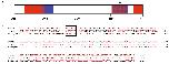 sequences are represented. Regions of high identity with both human and mouse sequences are shown with blue and red crosshatching. Sequence is