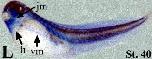 tn3 (titin novex-3) gene expression in Xenopus laevis embryos, NF stage 40, as assayed by in situ hybridization, lateral view, anteriorleft, dorsal up.