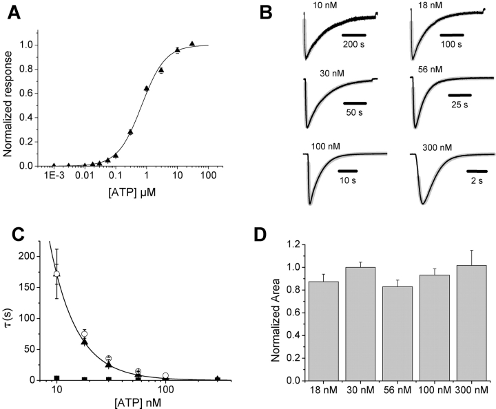Activation and desensitization of the recombinant P2X1 receptor at nanomolar ATP concentrations.
