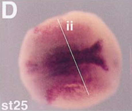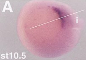 within the organizer region. (B) A section (depicted by the line âiâ in A) shows expression is restricted to the dorsal mesoderm of the