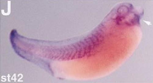 ventral forebrain. Note the expression within the notochord. (I) Stage 35. xLTBP-1 RNA is highly expressed in the muscle blocks