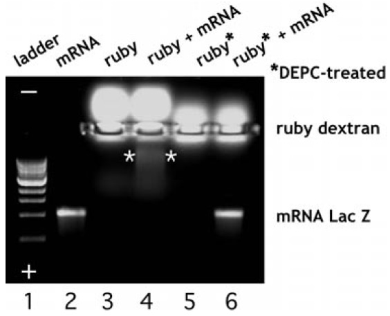 (lane 5), but is still fluorescent. Lac Z mRNA mixed with DEPC treated
