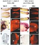animal pole region of a rostral blastomere, at the four-cell stage. The distribution of Lac Z activity (G, I, K) or ruby dextran (H, J, L) in tissues