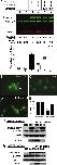 Fig. 4. JNK activation expels nuclear β-catenin. (A) L cells transfected with the superTOPFLASH plasmid were treated with Wnt-3A conditional medium (CM), anisomycin (67 ng/ml), and/or a JNK inhibitor, SP600125 (10, 40 μM), to assess the effect of JNK signaling activation (indicated by the phospho-cJun level on the immunoblot) on the protein level of β-catenin (normalized to HSP70) and β-catenin/TCF-mediated gene expression (folds of the fireflyluceferase activity normalized to the Renilla luciferase activity) at 24 h after various treatments. Quantification of the β-catenin/HSP70, phospho-cJun/HSP70 ratios, and the folds of luciferase activity are shown as the average and SD from three sets of independent experiments. (BâD%) Transfection of β-catenin-EGFP plasmid to COS-1 cells caused fluorescent aggregates in the nucleus (B), which were eliminated after UV irradiation (100 J/m2) (C) but were retained inside the nucleus by application of JNK inhibitor SP600125 (10 μM) after UV irradiation (D). (E) The percentage of β-catenin-EGFP-expressing COS-1 cells that have prominent nuclear aggregates in control (79.3% ± 5.1%; mean ± SD), SP600125 alone (80.5% ± 3%), UV irradiation (31.8% ± 5.7%), and UV irradiation with SP600125 (66% ± 7.4%) in three sets of experiments. *, P < 0.0001 versus the rest with a t test. (F and G) The nuclear and cytosol fractions of HEK293T cells after transfection with β-catenin-EGFP plasmids were examined by immunoblots to quantify the effect of UV-induced nuclear β-catenin and JNK kinase activity (KA). Anti-β-actin was used as a control for protein loading. This analysis shows UV causes a JNK activity-dependent depletion of nuclear β-catein-EGFP. Shown is representative result from three sets of independent experiments. UN, uninjected. (Magnifications: BâD%, Ã4,000.) |