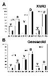 Fig. 7. Knockdown of JNK induces ectopic expression of the dorsal marker genes XNR3 and Goosecoid. The expression of the dorsal marker genes Xnr3 (A) and Goosecoid (B) are increased in both ventral (V) and dorsal (D) halves of embryos injected with 30 ng of JNK MO antisense oligo at indicated stages of development. |
