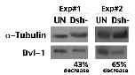 Fig. 10. Knockdown of Dsh in Xenopus oocytes with antisense oligos. Shown are results from two batches of oocytes. The intensity of Dsh was quantified using NIH Image J program and normalized to that of a-tubulin.