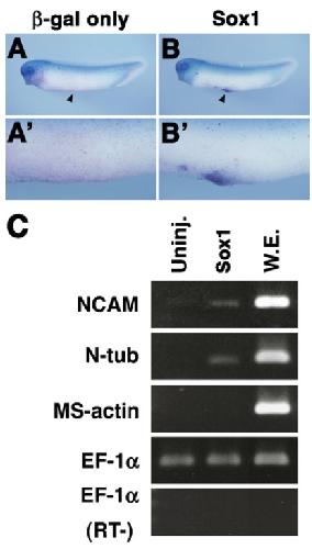 Sox1 mRNA, and cultured until sibling embryos reached stage 32. W.E.,