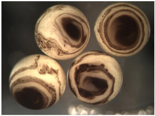 Fig. 5. Cortical torsion does not require interaction with microtubules. The eggs were incubated continuously for 4 hours (about four cell-cycle equivalents) in the presence of 20 mmol/l BDM and 10 μmol/l nocodazole. The cortical pigment pattern indicates counterclockwise rotation through several revolutions.