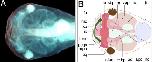 Cranial structures in Xenopus. A: Dorsal view of an Alcian blueâstained wildâtype Xenopus embryo at NF stage 48. B: The corresponding schematic drawing of the craniofacial cartilages and other head structures and organs.