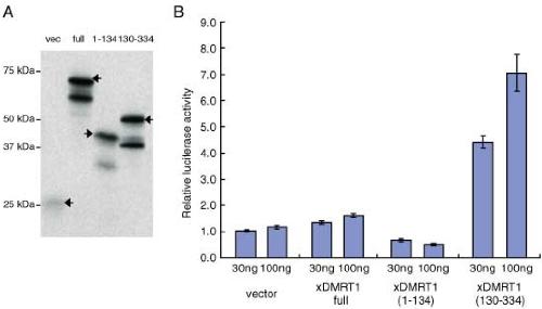 Expression and promoter analysis of Xenopus DMRT1 and functional characterization of the transactivation property of its protein.