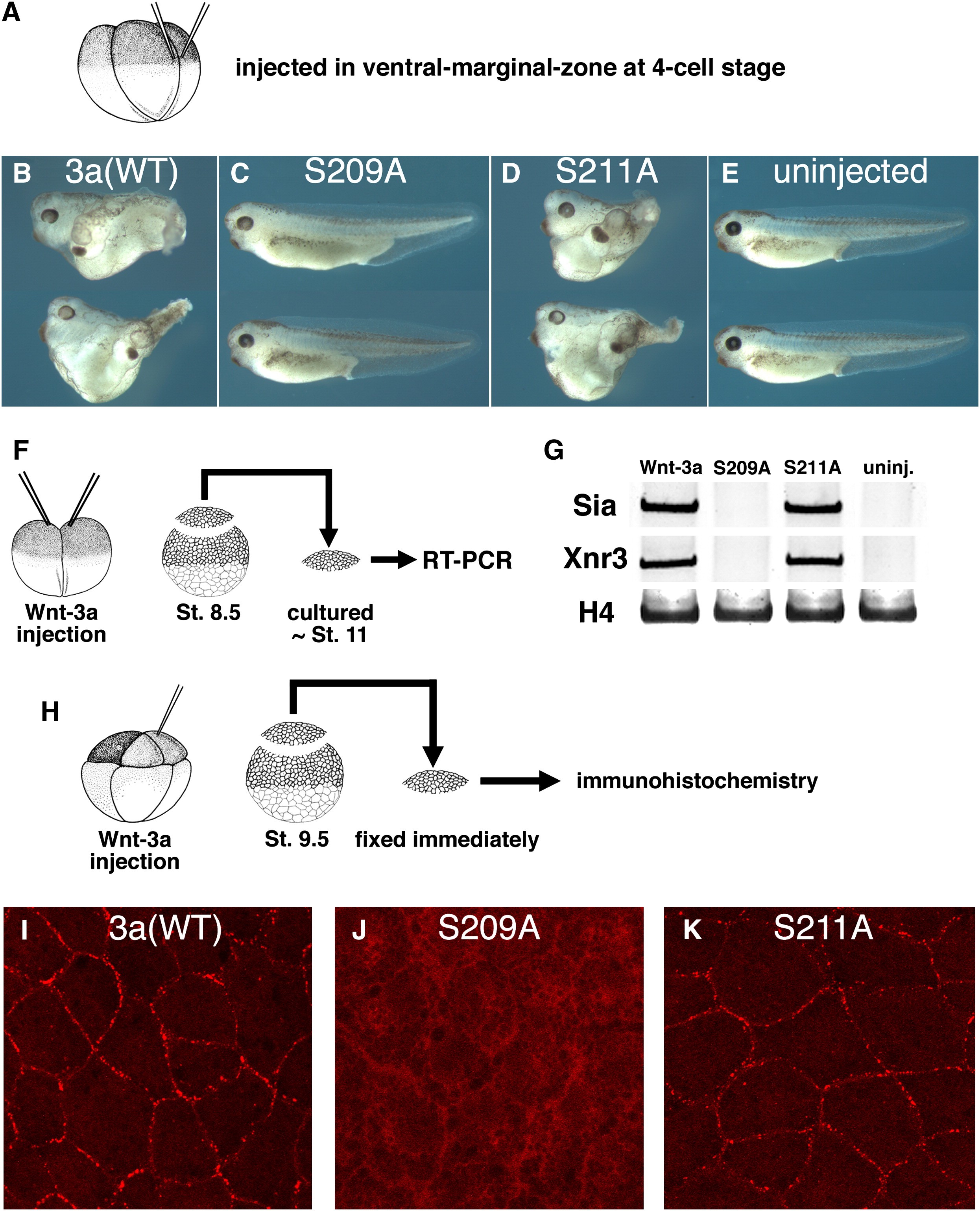 The secretion and extracellular transport of Wnt protein are thought to be well-regulated processes. Wnt is known to be acylated with palmitic acid at a conserved cysteine residue (Cys77 in murine Wnt-3a), and this residue appears to be required for the control of extracellular transport. Here, we show that murine Wnt-3a is also acylated at a conserved serine residue (Ser209). Of note, we demonstrated that this residue is modified with a monounsaturated fatty acid, palmitoleic acid. Wnt-3a defective in acylation at Ser209 is not secreted from cells in culture or in Xenopus embryos, but it is retained in the endoplasmic reticulum (ER). Furthermore, Porcupine, a protein with structural similarities to membrane-bound O-acyltransferases, is required for Ser209-dependent acylation, as well as for Wnt-3a transport from the ER for secretion. These results strongly suggest that Wnt protein requires a particular lipid modification for proper intracellular transport during the secretory process.