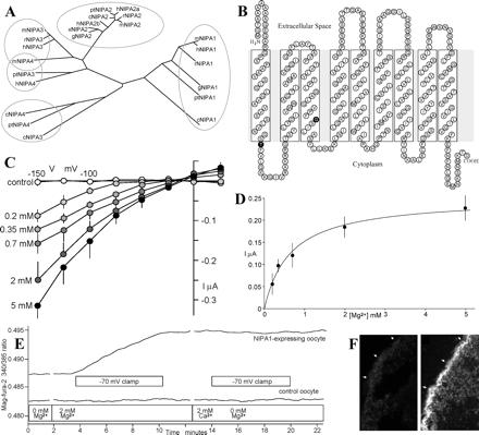 Mutations in the NIPA1(SPG6) gene, named for "nonimprinted in Prader-Willi/Angelman" has been implicated in one form of autosomal dominant hereditary spastic paraplegia (HSP), a neurodegenerative disorder characterized by progressive lower limb spasticity and weakness. However, the function of NIPA1 is unknown. Here, we show that reduced magnesium concentration enhances expression of NIPA1 suggesting a role in cellular magnesium metabolism. Indeed NIPA1 mediates Mg2+ uptake that is electrogenic, voltage-dependent, and saturable with a Michaelis constant of 0.69+/-0.21 mM when expressed in Xenopus oocytes. Subcellular localization with immunofluorescence showed that endogenous NIPA1 protein associates with early endosomes and the cell surface in a variety of neuronal and epithelial cells. As expected of a magnesium-responsive gene, we find that altered magnesium concentration leads to a redistribution between the endosomal compartment and the plasma membrane; high magnesium results in diminished cell surface NIPA1 whereas low magnesium leads to accumulation in early endosomes and recruitment to the plasma membrane. The mouse NIPA1 mutants, T39R and G100R, corresponding to the respective human mutants showed a loss-of-function when expressed in oocytes and altered trafficking in transfected COS7 cells. We conclude that NIPA1 normally encodes a Mg2+ transporter and the loss-of function of NIPA1(SPG6) due to abnormal trafficking of the mutated protein provides the basis of the HSP phenotype.