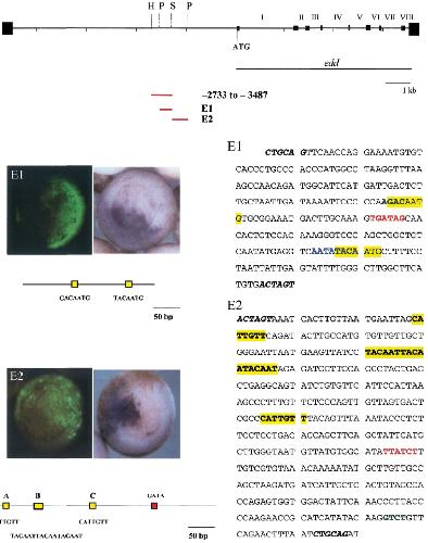 Fig. 3 Two promoter fragments, E1 and E2, contain putative Soxbinding