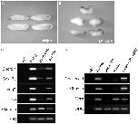 Interfering with XSRF function changes cell fates. (A,B) Phenotypes of embryos injected with DN XSRF RNA dorsally as compared with uninjected embryos. (C,D) Embryos were injected at the four-cell stage in the animal pole region with DN XSRF mRNA (1-2 ng) and the animal cap explants cut at stage 8.5 were cultured to stage 10.25 in the presence or absence of Activin protein (5 ng/ml) and then analyzed by RT-PCR. (C) DN XSRF alone induced mesoderm (Chordin and VegT), endoderm (Sox17β) and neural (Zic3) markers in animal caps. Epidermal keratin (EÃkeratin), an epidermal marker, was reduced by injection of DN XSRF. (D) DN XSRF enhanced the ability of Activin to induce target genes in animal caps. ODC was used as a loading control; Uninjected, uninjected control animal caps. |