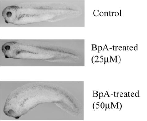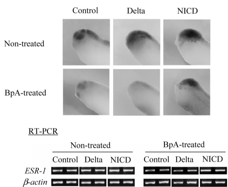Bisphenol A causes malformation of the head region in embryos of Xenopus laevis and decreases the expression of the ESR-1 gene mediated by Notch signaling.