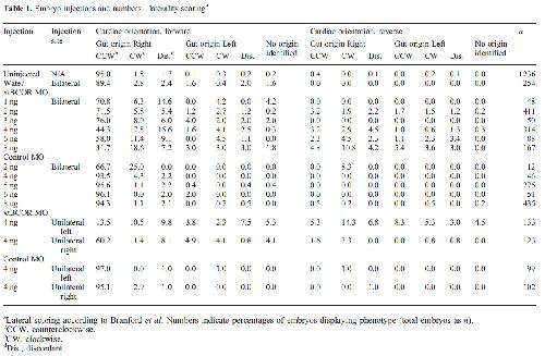 Table 1. Embryo injections and numbers—laterality scoring