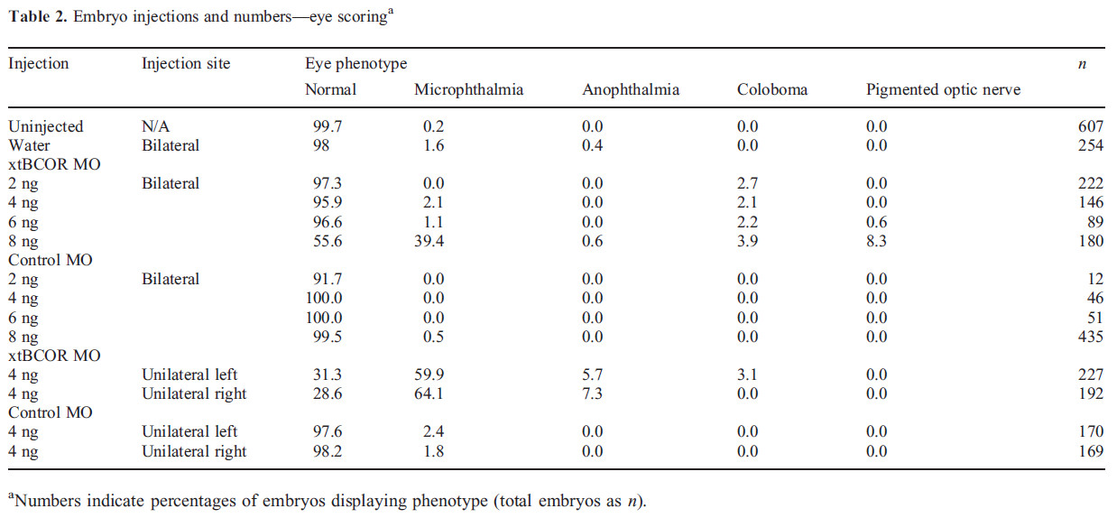 Table 2. Embryo injections and numbers—eye scoring