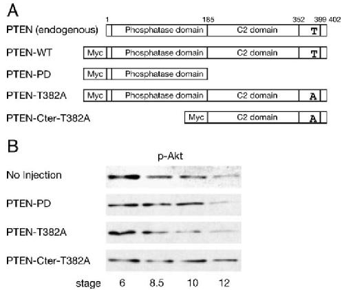 or PTEN-Cter-T382A at the one-cell stage. The progression of