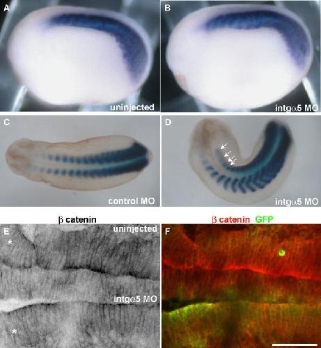 Integrin alpha5 is required for somite rotation and boundary formation in Xenopus.
