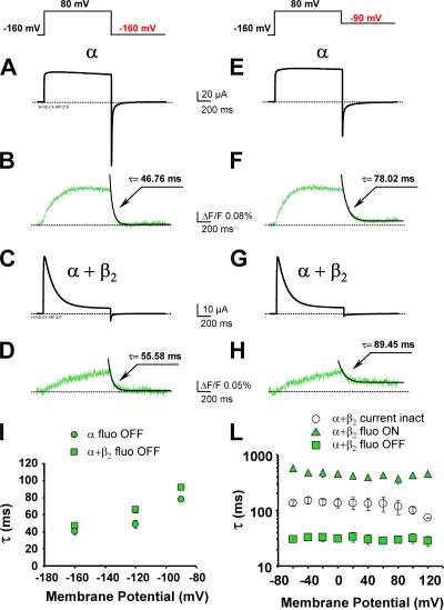 The beta(2) subunit of the large conductance Ca(2+)- and voltage-activated K(+) channel (BK(Ca)) modulates a number of channel functions, such as the apparent Ca(2+)/voltage sensitivity, pharmacological and kinetic properties of the channel. In addition, the N terminus of the beta(2) subunit acts as an inactivating particle that produces a relatively fast inactivation of the ionic conductance. Applying voltage clamp fluorometry to fluorescently labeled human BK(Ca) channels (hSlo), we have investigated the mechanisms of operation of the beta(2) subunit. We found that the leftward shift on the voltage axis of channel activation curves (G(V)) produced by coexpression with beta(2) subunits is associated with a shift in the same direction of the fluorescence vs. voltage curves (F(V)), which are reporting the voltage dependence of the main voltage-sensing region of hSlo (S4-transmembrane domain). In addition, we investigated the inactivating mechanism of the beta(2) subunits by comparing its properties with the ones of the typical N-type inactivation process of Shaker channel. While fluorescence recordings from the inactivated Shaker channels revealed the immobilization of the S4 segments in the active conformation, we did not observe a similar feature in BK(Ca) channels coexpressed with the beta(2) subunit. The experimental observations are consistent with the view that the beta(2) subunit of BK(Ca) channels facilitates channel activation by changing the voltage sensor equilibrium and that the beta(2)-induced inactivation process does not follow a typical N-type mechanism.