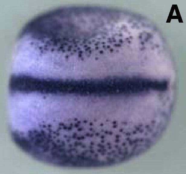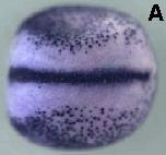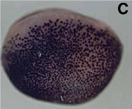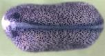 tex15 (testis expressed 15) gene expression in Xenopus laevis, assayed via in situ hybridization, NF stage 17/18, dorsal view, anterior left. |