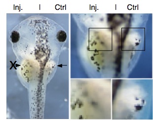 panel shows the dorsal view of a stage 45 embryo injected unilaterally