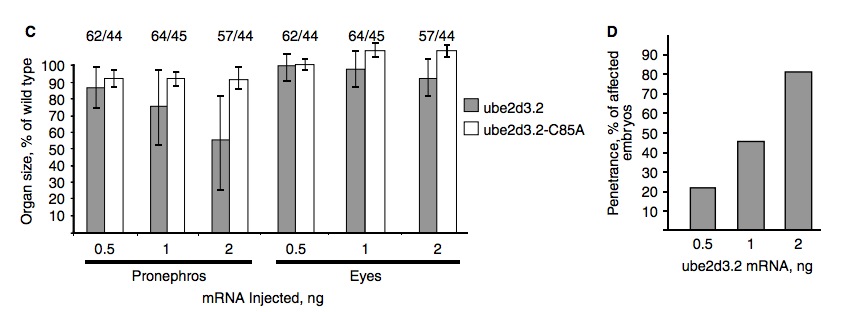 with increasing amounts of ube2d3.2 or ube2d3.2-C85A mRNA