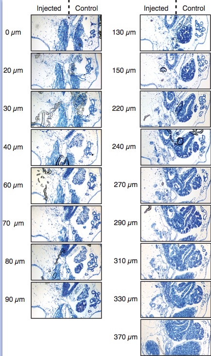 oval on the uninjected side indicates the pronephros and on the injected side the site normally occupied by the pronephros. For a complete range of longitudinal sections, see Supplementary