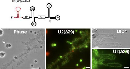 Dönmez, Modified nucleotides at the 5' end of human U2 snRNA are required for spliceosomal E-complex formation. 2004, Pubmed
