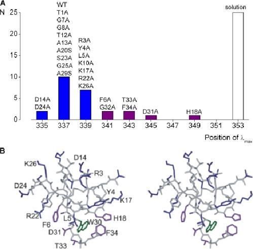 Reshetnyak, Decomposition of protein tryptophan fluorescence spectra into log-normal components. II. The statistical proof of discreteness of tryptophan classes in proteins. 2001, Pubmed
