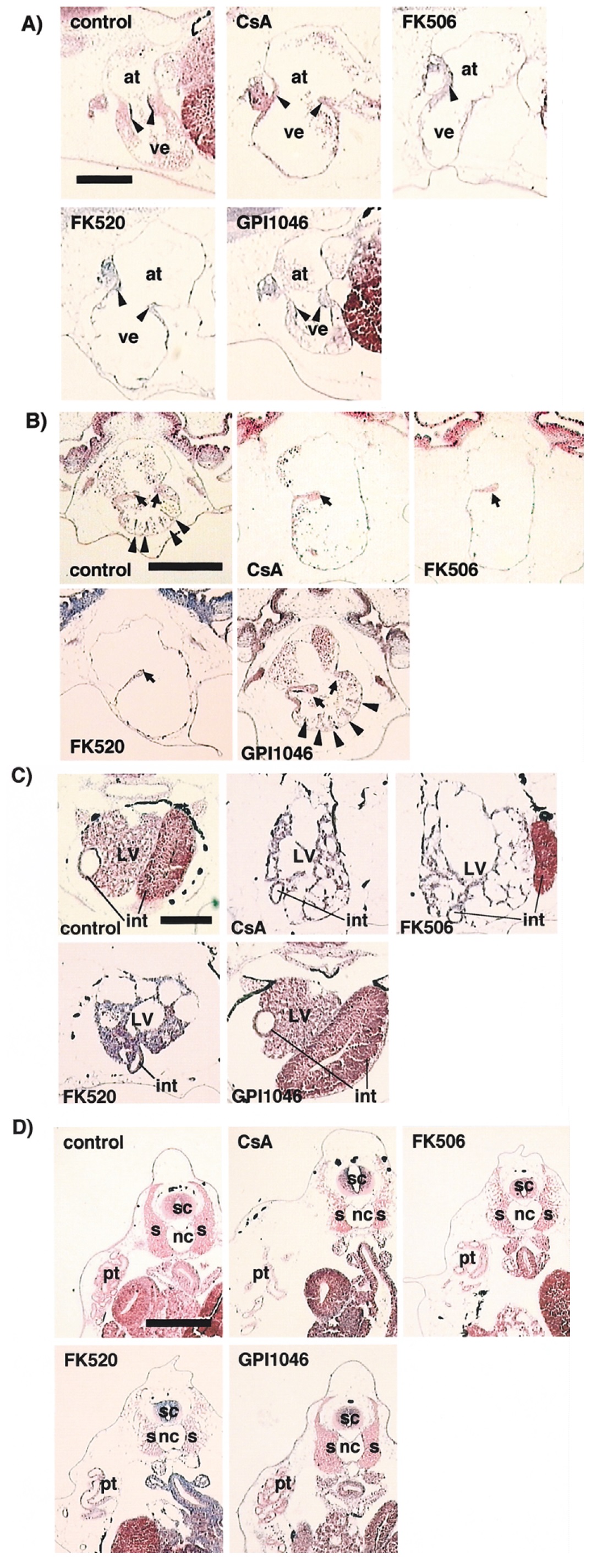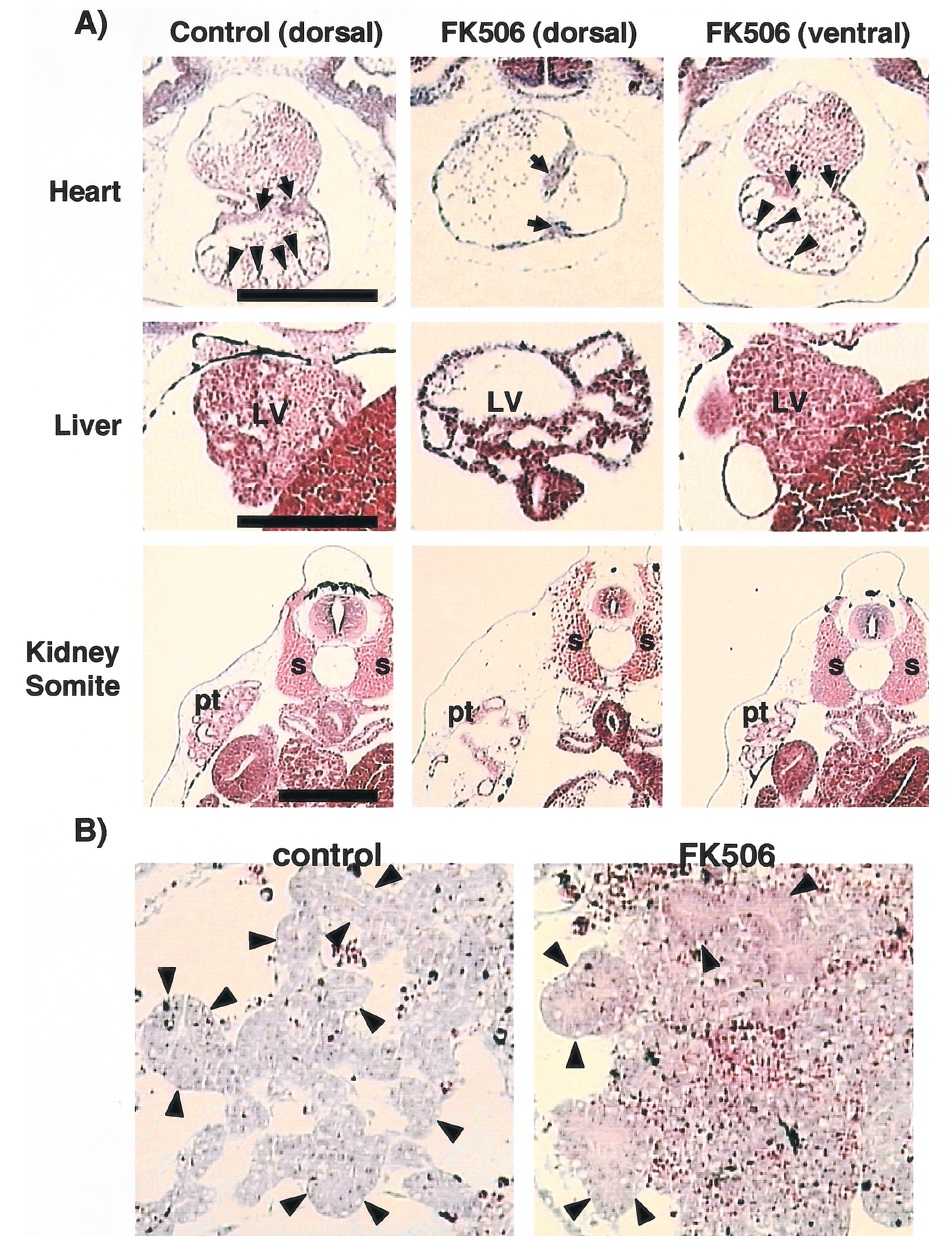 FK506 on ventral blastomeres. Arrow, thickening of endocardium;