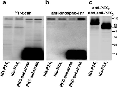 Lack of evidence for direct phosphorylation of recombinantly expressed P2X(2) and P2X (3) receptors by protein kinase C.