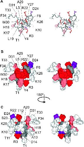 Stampe, Intimations of K+ channel structure from a complete functional map of the molecular surface of charybdotoxin. 1994, Pubmed
