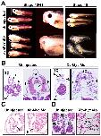 Fig. 2. Knockdown of Xc-Myc provokes edema and compromises organogenesis. (A) Embryos injected with Xc-Myc morpholino (Xc-Myc Mo) at the one-cell stage developed edema in the head and heart region (white arrows). By stage 45 (right panels) massive edema and associated defects in organogenesis were obvious in Xc-Myc knockdown tadpoles (Xc-Myc Mo). (B-D) Histological analysis (stage 37) of Xc-Myc knockdown embryos revealed profound developmental defects: somites (S), spinal cord (SC), notochord (N), abdominal cavity (ac), heart (H), pronephros (PN), dorsal aorta (DA) and cardinal vein (CV). (C) The heart is shown. (D) The region containing the dorsal aorta and cardinal vein.