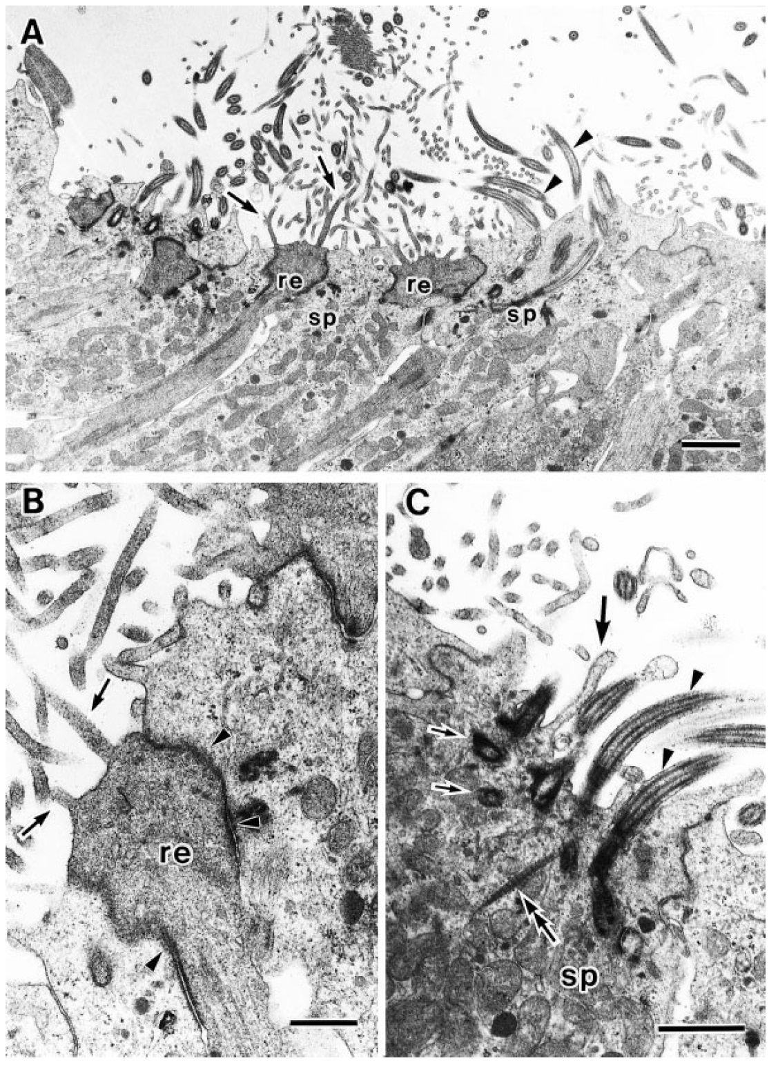 epithelial cells of Xenopus larvae. Cross sections of Xenopus