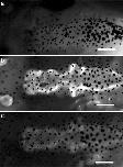 Fig 3. Kinetics of induction in the brain of the TRDN/GFP fusion protein transgene driven by the NBetaT promoter. Dox (50 ug/ml) was added to the rearing water. The same animal before induction (a), after 12 h of Dox induction (b), and 24 h after withdrawal of Dox (c). (The left is anterior in all images.) (Bars = 500 um.)