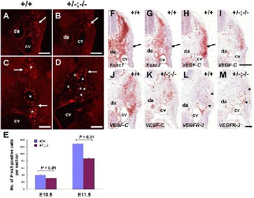 The forkhead transcription factors, Foxc1 and Foxc2, are required for arterial specification and lymphatic sprouting during vascular development.
