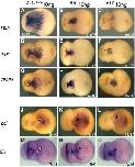 Figure 3. Recruitment of primitive myeloid cells to embryonic wound sites in Xenopus laevis. spib (A-C), mpo (XPOX2) (D,E), and scl (G-I) whole mount in situ hybridization in wounded embryos. Three hours is sufficient for the recruitment of myeloid cells expressing spib or mpo to the scrape wound outline (dashed line contour in the inset). scl-expressing cells are not recruited to the wound site, and primitive myeloid cell recruitment occurs before the appearance of a fully functional vascular network. |