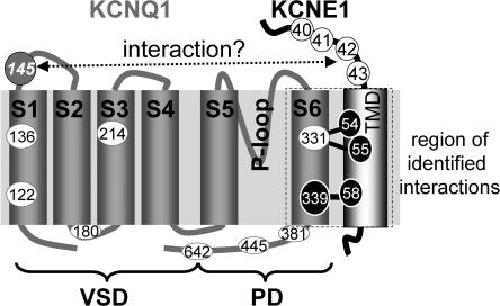 Melman, KCNE1 binds to the KCNQ1 pore to regulate potassium channel activity. 2004, Pubmed