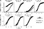Figure 6. Effects of DTT treatment on the voltage dependence of activation of different combinations of Q1/E1 variants. The type of Q1 and E1 variants is marked on top of each panel: (A) E1-G40C coexpressed with Q1(-Cys)-I145C or Q1(-Cys)-WT, (B) E1-K41C coexpressed with Q1(-Cys)-I145C or Q1(-Cys)-WT, and (C) Q1(-Cys)-I145C coexpressed with E1-WT, E1-L42C, or E1-E43C. Voltage clamp protocol (diagrammed in the right bottom panel) and data analysis are the same as those described for Table I. The 2-s isochronal activation curves before and after DTT treatment are denoted by open and closed circles, respectively. |