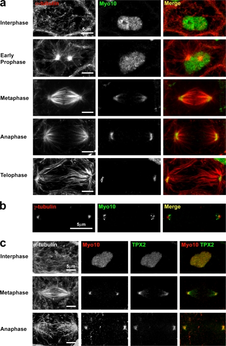Myosin-10 and actin filaments are essential for mitotic spindle function.