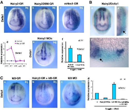 Genes referenced: bax bcl2 dlc dll1 hes1 hes2 hes4 hes5.10 hes5.5 hey1 id3 msx1 myc notch1 pax3 six1 snai2 sox10 sox15 sox3 sp6 srrt stat3.2 tbx2 tubb2b