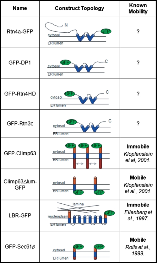FIGURE 4. Mammalian GFP-fused membrane proteins and their known lateral mobilities used for FRAP analysis.