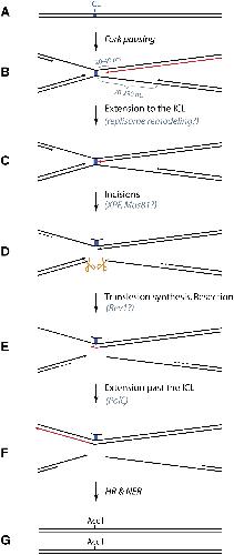 Mechanism of replication-coupled DNA interstrand crosslink repair.