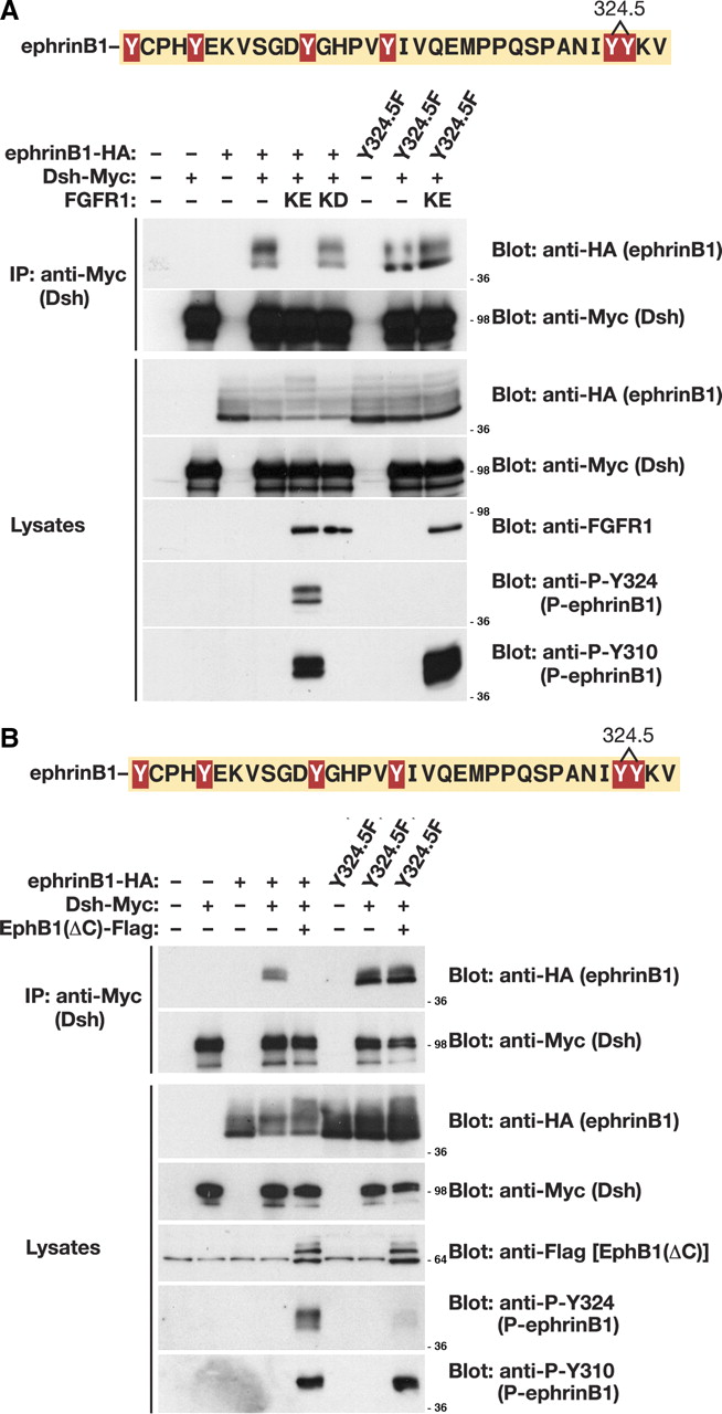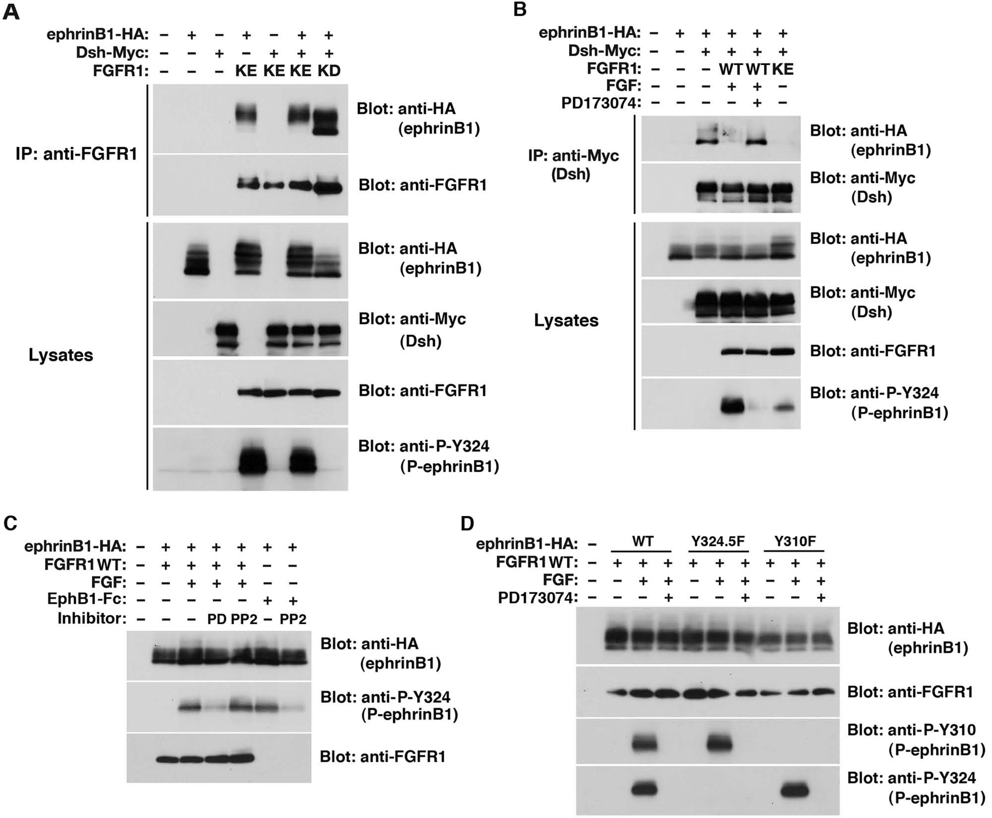 Fibroblast growth factor receptor-induced phosphorylation of ephrinB1 modulates its interaction with Dishevelled.