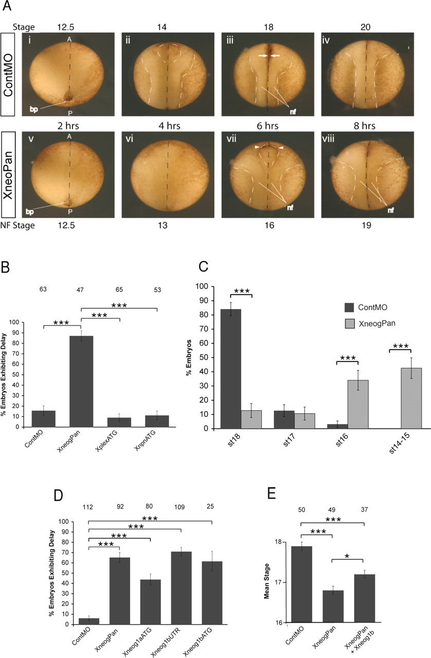 apposition.B,Quantification ofthe number of embryos exhibiting a neurulation delaywhen injectedwith ContMO, XneogPanMO,