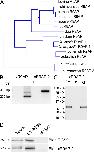 Figure 2. Identification of the photoreceptor-specific R9AP isoform in Xenopus. (A) Phylogeny tree of R9AP protein sequences built using the Neighbor-Joining method. Accession nos. are as follows: bovine, AAM67417; chicken, NP_989836; chimpanzee, XP_512566; dog, XP_855518; human, NP_997274; macaque, XP_001087093; mouse, NP_665839; pufferfish, CAF92756; rat, XP_001079782; zebrafish, XP_687644. Xenopus tropicalis R9AP1 is deduced from genome v4.1, scaffold 94 (920566:921276), and X. tropicalis R9AP2 is deduced from genome v4.1, scaffold 761 (402303:408685). (B) RT-PCR amplification of xR9AP1 and xR9AP2 transcripts from Xenopus retina; omission of reverse transcription (RT) in parallel samples served as a negative control for DNA contamination. (C) Western blot of Xenopus retina extract probed with the antibody specific to xR9AP2. Lane T, total extract; lane S; soluble protein fraction; lane M, membrane fraction. Note that the xR9AP2 band is a doublet, which reflects the previously documented phosphorylation of R9AP in photoreceptors (Martemyanov et al., 2003). (D) xR9AP2 coimmunoprecipitates with RGS9-1 from Xenopus retina. Beads coated with sheep IgG were used for the negative control. |