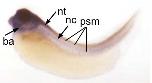 zbtb33 (zinc finger and BTB domain containing 33 )gene expression in Xenopus laevis embryo, assayed via in situ hybridization, NF stage 14, dorsolateral view, anterior up.