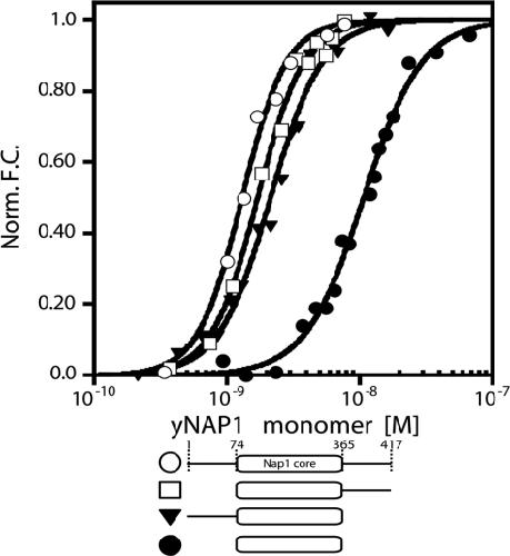 circles), yNap1(74–417) (open squares), yNap1(1–365)